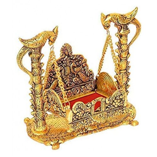Gaurav Art Collectioin White Metal Gold Plated Laddu Gopal Ji Jhulla/Palana/Swing for Pooja Purpose and Gift Item.