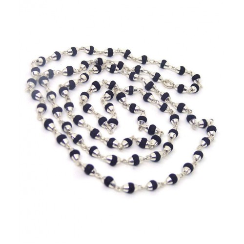 Black tulsi beads mala in silver conical caps. Weight : 5.0g. Bead Size : 3mm. Number Of Beads : 80. Length of mala : 24 inches (from ist bead till last bead) // 12 inches (Around the Neck). Tulsi means "the incomparable one". Tulsi is Divinity. It maintains ritual purity and wards off evil.Tulsi is regarded as the 4th incarnation of supreme Goddess. It is helpful in warding off negativity and helps in healing. Tulsi wood is the most sacred of all wood in the Hindu tradition. It is worshipped in Indian temples as a living goddess. One Hindu legend relates that Vishnu spawned Tulsi from the turbulent seas in order to help all mankind. Tulsi is regarded as best for worshipping lord Vishnu, Ram, and Krishna. According to Ayurveda, it is very useful for curing throat diseases.It is also used for the purification of the body.It gives peace of mind and reduces stress. It has very distinguished appearance, aroma and flavor. Black Tulsi Silver Cap Mala, 100% Original and Very Rare Collection by" SoilMade - Pick Use - Make In India".
