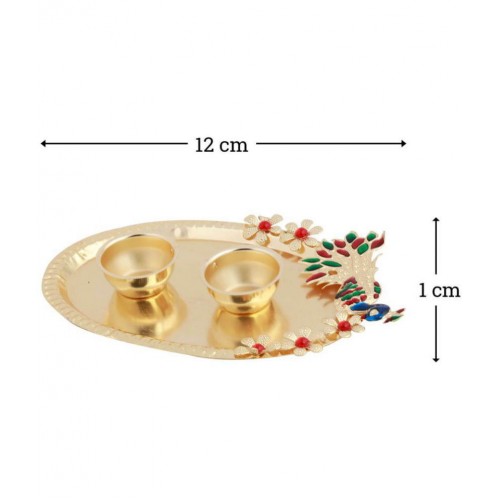 Gold Plated Designer-Ethnic Peacock Design Kankavati Pooja Thali