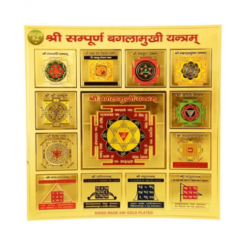 Our brands believes to provide the good quality products to our customer so that customer will get satisfaction as they want. KESAR ZEMS Shree Sampurna Baglamukhi Yantra On Foil Paper (23 x 23 x 0.1 cm)Golden: Sampurna baglamukhi yantra: the presiding deity goddess baglamukhi is 0ne of the dash mahavidyas. Baglamukhi is worshipped for power, victory, protection for cuts, scars, operations and accidents and dominance over enemies. She helps achieve success in law-suits and competitions as well as pacify quarrels to the worshipper's advantage. Her worship is also effective in warding off evil persons, spirits and yakshani. Baglamukhi is identified with the second night of courage and is the power or shakti of cruelty. She is described as the devi with three eyes, wearing yellow clothes and gems, moon as her diadem, wearing champaka blossoms, with one hand holding the tongue of an enemy and with the left hand spiking him, thus should you meditate on the paralyser of the three worlds. Seated on the right of bagala is the maharudra, with one face, who dissolves the universe. Bagalamukhi means "The crane-headed one". This bird is thought of as the essence of deceit. She rules magic for the suppression of an enemy's gossip. She rules deceit which is at the heart of most speech. She can in this sense be considered as a terrible or bhairavi form of matrika devi, the mother of all speech. Baglamukhi kavach protects you from your enemies and black magic, too. The following yantras are included in this shri sampurna baglamukhi yantra :-shri baglamukhi yantra (center).Siddh shri yantra.Shri ganpati yantra.Shri matasya yantra.Shri bisa yantra.Shri shatru vijay yantra.Shri ram raksha yantra.Shri vahan durghatna yantra.Shri gita yantra.Shri ketu yantra.Shri shani yantra.Shri rahu yantra. Shri kalsarp yantrathis yantra is made on very thin foil paper. The weight of the yantra is around 15 grams. The size of the yantra is approximately 9" x 9".