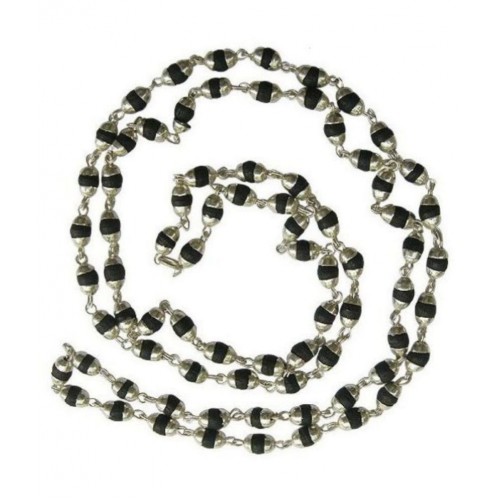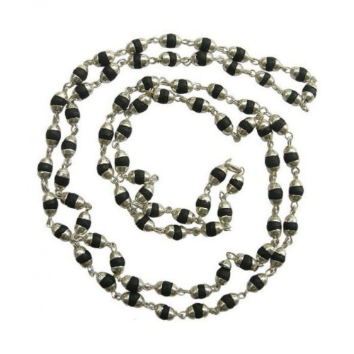 Malabar gems natural black tulsi beads in silver cap rosary japa mala. This splendid silver plated tulsi mala lights up your inner spirit and health. This tulsi mala with silver-toned caps is 32 cm long each bead is safely and beautifully set inside silver plated caps. Tulsi beads: Tulsi or 'basil' is considered as the most sacred wood for japa meditation. It's increases spiritual power of mantras - thus increasing devotion and spiritual growth. Tulsi is also considered as manifestation of lakshmi, the goddess of wealth. Characteristics:Rejuvenator for the restless mind, good fortune, concentration power, protection, balances kapha dosha the cord running through the beads symbolizes the thread of life. This mala is blessed & energized with proper mantras, puja and spiritually activated to infuse potency and power. It is not necessary that mala can only be used for meditation, japa or prayer. It can also be worn as necklace to attract positive vibes (all malas) & bring benefits. All of our gemstones and beads are 100% genuine. Some of our stones have been slightly enhanced by the manufacturer (which is typical for the entire gemstone industry). Due to the natural materials used the colour and the size of the beads may vary.