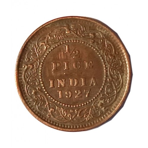 OLD RARE 1/2 PICE YEAR 1927 GEORGE V KING EMPEROR RARE COIN