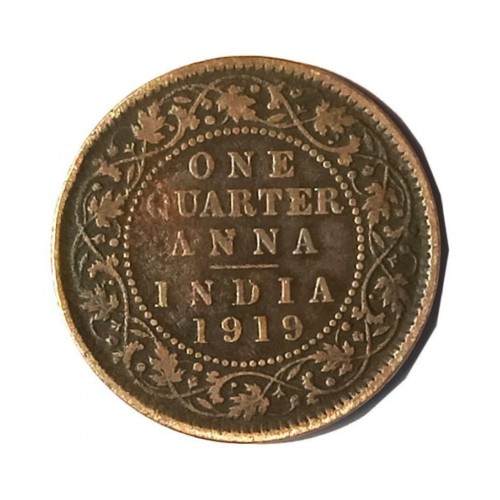 OLD RARE ONE QUARTER ANNA YEAR 1919 GEORGE V KING EMPEROR
