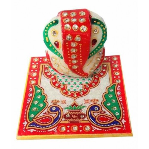 Ocean Enterprises Multicolour Marble Ganesh Chowki