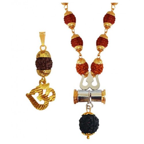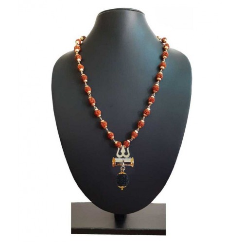 SKE trendy new look designer cap mala with silver damru gold plated rudraksha mala resin chain set for unisex
