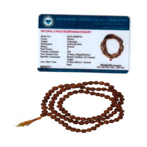 Comes With Lab Tested Report Of Authenticity by Gemmologist.According to religious texts Rudrakshya Mala charge the soul with spiritual power or shakti, increasing the soul's own radiance. It has ability to more fully express its divine power & wisdom in the material world.Natural Rudraksha Mala lab tested by professional Gemmologists