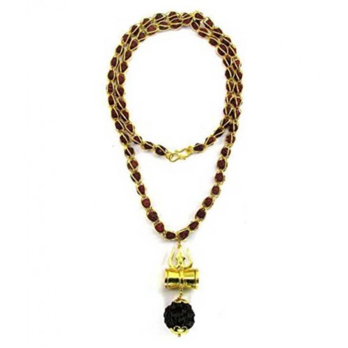 PAYSTORE 5 Mukhi Rudraksha Wired Bead Mala With Shiv Trishul & Damru Brass Necklace Brass Pendant Set