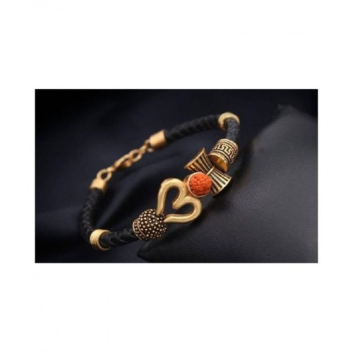 PAYSTORE Rudraksha OM Trishul Damroo Designer Oxidized Gold Bahubali Kada Bracelet