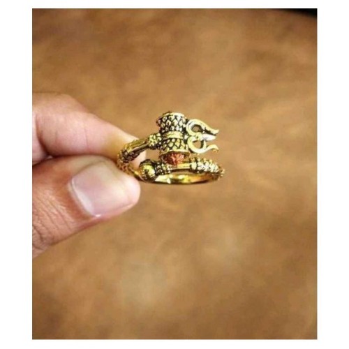 PAYSTORE (Set Of 2 Pcs) Adjustable (Multicolor) Stylish Trending Rudraksha Oxidized Silver & Golden Plated Mahakal Shiva Trishul Damroo Designer Bahubali Cuff Finger Ring Stainless Steel Silver, Gold Plated Ring