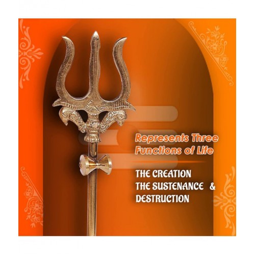 On Purchase you will Get ; Original Brass Shiva Trishul With Rudraksh Bracelet. This Pittal Gold Trishul is also set for kitchen living door in antique stachu decoret peace