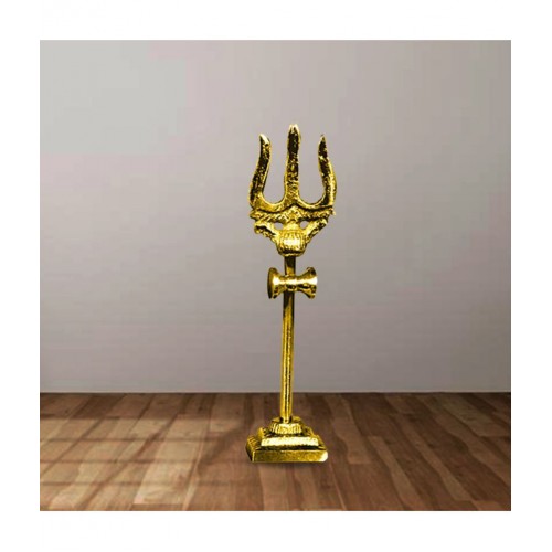 Trishul (Trident) Damru with Stand Brass Statue for Car Dashboard / Puja Ghar