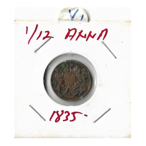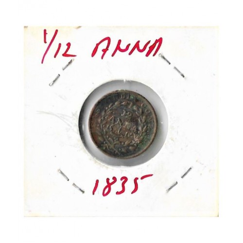 RARE COPPER SMALL ,1/12 ANNA EAST INDIA COMPANY , YEAR 1835 IN EXTRA FINE CONDITION HIGH GRADE COLLECTIBLE 1/12 ANNA.