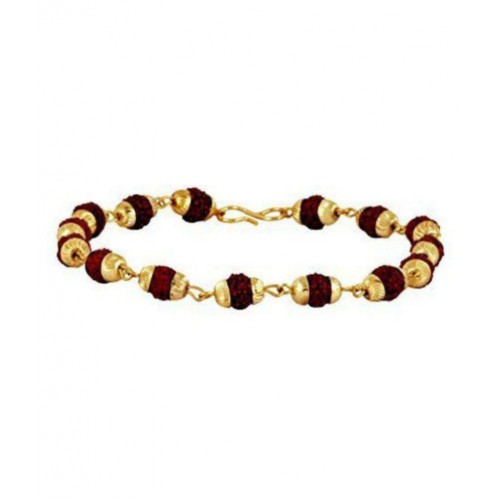 I -This Men's Bracelet comes with Rudraksh American Diamond Gold Om Sun Cuff Kada ,Gold Colour plating which is of Quality. Quality golden colour alloy and golden beads.The bracelet is beaded by Rudraksha for perfect fit.Length is adjustable , bracelet is long enough to wear or remove over the hand. 5mm diameter beads are throughout the Bracelet II - 10 mm Earthen Brown Rudraksha Beads capped with Etches Glossy Cap. Plating: 10 micron, 22K Gold Plating. Care: Avoid Contact With Water,Perfumes Or Profuse Sweating To Ensure Plating Remains In Good Shine Locking: S-Hook makes it easy to wear and remove. Dimensions: Length: mm x Width: 6 mm