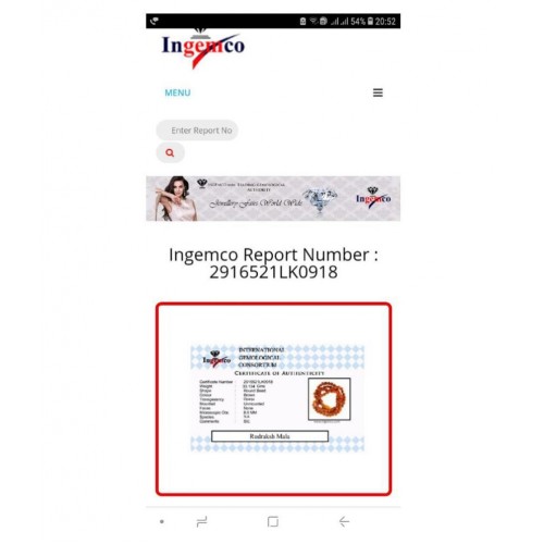 • Disclaimer:THE CERIFICATE SHOWN IS ILLUSTRATIVE AND THE CERTIFICATE NUMBER WILL BE DIFFERENT FOR EVERY RUDRAKSHA MALA.