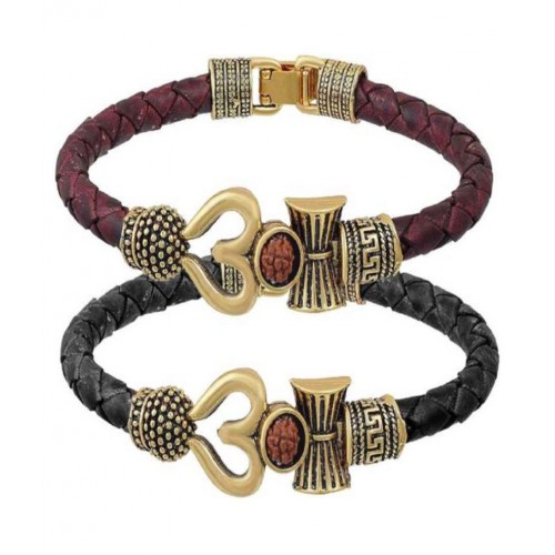 Rudras Combo of Brown & Black Golden Trident Damru Bahubali Kada Bracelet