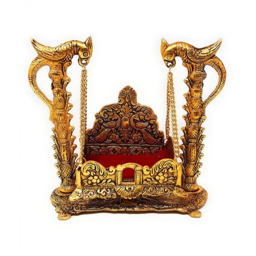 • Saurabh Appliances Metal Handicrafted Laddu Gopal Jhula (Golden Oxidized_17.8 x 9.5 x 17.1 cm)