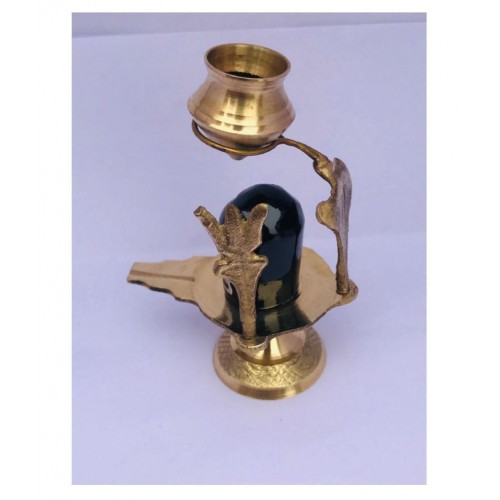 Shivshop Brass Shivling with Sheshnag and Black Stone Ling Shivling Statue for Hindu Puja Shiva Ling/Shivling Decorative Sheshnaag Showpiece