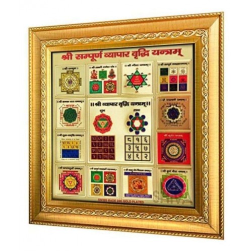 Shree Sampoorna Vyapar Vridhi Yantra Frame (Golden, 19x19 cm) By RUDRA DIVINE / 24k Gold Plated Shree Sampuran Sampuran Vyapar vridhi Yantra Hard wooden frame and gold plated yantra