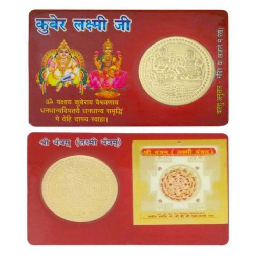 Goddess Laxmi Kuber Yantra is made from quality card board and yantra alloy coin. The spiritual sacred motifs are designed on this yantra with scriptural disciplines. As per belief, this yantra is blessed by Lord Kubera & Goddess Laxmi and brings prosperity with business growth. It can be kept in wallet/money purse/cash counter/pooja ghar. Yantra color may vary due to slight variations of the image in your monitor settings