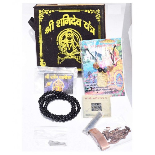 This Shani Dosh Niwaran Yantra kavach box set is a Complete shani Dosh Nivaran kit, it contains Shani kavach to wear, Gold Plated Shani Yantra, Original black agate mala to keep in pooja place or wear and many kinds of tool that remove thae bad influences of Shani Greh.