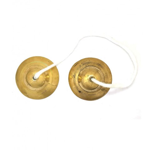 The manjeera is a traditional percussion instrument of India. In its simplest form, it is a pair of small hand cymbals. They often accompany folk or devotional music. It is used in various religious ceremonies of India, especially bhajans. The manjira is an ancient instrument. Pictures of it have been found in temples dating back to the earliest times. Manjira are usually made of bronze, brass, copper zinc or Bell metal and connected with a cotton cord which passes through holes in their center. They produce a rhythmic tinkling sound when struck together. The sound's pitch varies according to their size, weight and the material of their construction. A player can also adjust the timbre by varying the point of contact while playing.