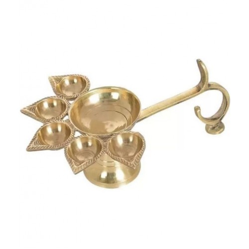 Spherulemuster Panch Aarti Diya for Pooja. Puja Items For Home, Puja Mandir - Perfect For Your Home & Office. This Brass decorative item Enhance the decor value of the house, office, hotel, temple etc. Product Dimensions: H:: 6 W:: 11 L:: 11 cm. Material : Made from the finest Brass material and are suitable for both indoor and outdoor usage, Color: Golden. Establish your home or office space with this extremely elegant looking piece of home décor. Does not get hot even after long hours of repeated burning; Is designed to allow easy cleaning and refilling of oil. This packet contains 50 pc of diya batti.
