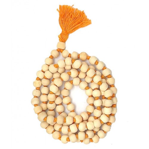 Tulsi Mala using in Jap Tulsi Mala made by Tulsi wood. Tulsi Mala contains 108 +1 Beads with Chandan Tika. This pack contains kanthi mala which can be wear in neck or wrist.