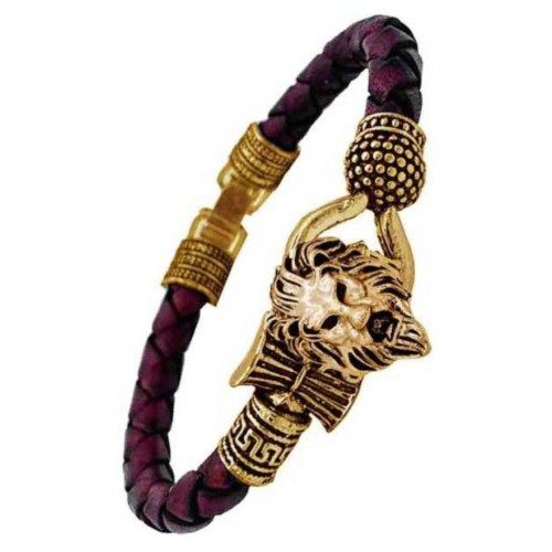 TEVATIYA Rudraksha Lion Trishul Damroo Designer Oxidized Gold Bahubali Leather Bracelet for Men & Women