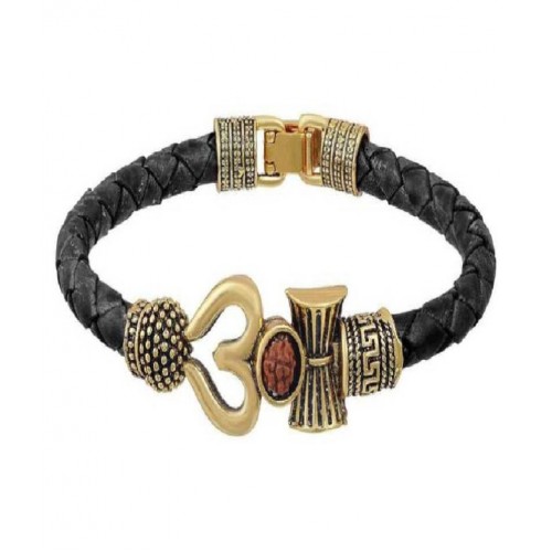 TEVATIYA Rudraksha OM Trishul Damroo Designer Oxidized Gold Bahubali BROWN Leather Kada Bracelet for Men & Women