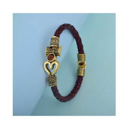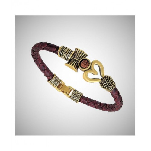 TEVATIYA Rudraksha OM Trishul Damroo Designer Oxidized Gold Bahubali Leather Kada Bracelet for Men & Women