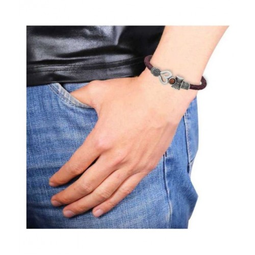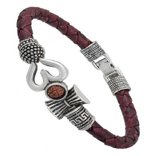 TEVATIYA Rudraksha Om Trishul and Damroo Silver Shiva Kada Bracelet for Men and Women