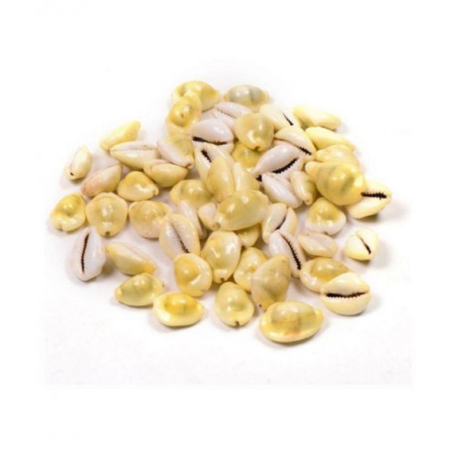 Significance of Yellow Kaudi or Peeli Kowdi : • Yellow Kaudi or Peeli Kowdi or Yellow Cowrie shell is of great significance in the worship of Goddess Mahalaxmi and Lord Vishnu. • Yellow Kaudi is also used during the pooja of Goddess Baglamukhi. • Many spiritual pooja processes are completed successfully with the aid of Yellow Cowrie. • In Astrology, Yellow Kaudi is used to balance the planetary effect of Jupiter and the malefic effects of Ketu and Rahu. • Keeping Yellow Kaudi peeli kawdi in one's place of wealth bestows the blessings of Lord Kuber and goddess Lakshmi. • On the auspicious occassion of Dhanteras and Akshay Triteeya, Yellow Kaudi must be kept at pooja place after wrapping in yellow cloth. This ensures a smooth flow of money in the family. •People suffering from minimal savings despite good earnings must keep 21 pieces of Yellow Cowrie kaudi in the north-west part of their room.
