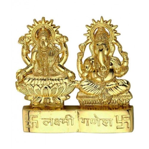 This is a very beautiful idol of Lord Ganesha and Goddess Laxmi which is made of metal and a golden touch on it.