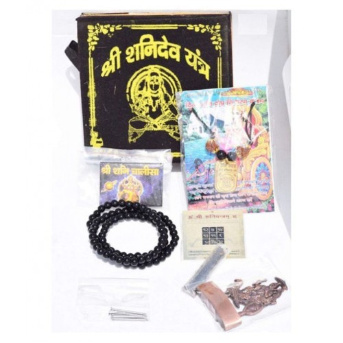This Shani Dosh Niwaran Yantra kavach box set is a Complete shani Dosh Nivaran kit, it contains Shani kavach to wear, Gold Plated Shani Yantra, Original black agate mala to keep in pooja place or wear and many kinds of tool that remove thae bad influences of Shani Graha.