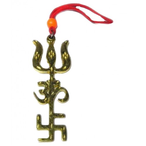 Combines The Power Of Trishul, Om And Swastik. Can Be Attached To Your Car's Dashboard And Also Can Be Placed Inside Your House And Office. Also Can Be Placed In Your Puja Ghar. This Is An Auspicious Sign To Place On A Wall Or The Entrance Of Your Home And Make It Thrice-blessed.