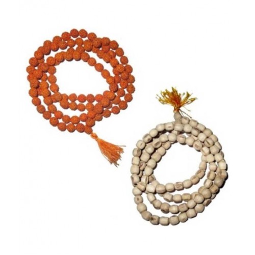 SKE 2 combo Mala is used to chant mantras to please Lord Shiva or Lord Vishnu and can be worn around the neck as necklace. Rudrkasha beads work as a protector against negativity and evil eye. Like Lord Shiva was given 108 names in The Mahabharta, also Lord Vishnu had 108 names mentioned in The Mahabharata. Using this mala also lifts a person spiritually and reflects positive effect on ones health.