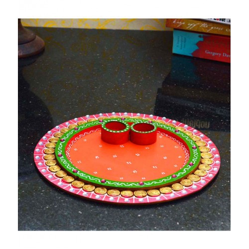 Expert workmanship on this pooja plate awards it a dazzling look with enamelwork