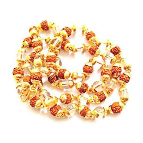 • Malabar Gems Rudraksha & Sphatik in Golden Caps Mala