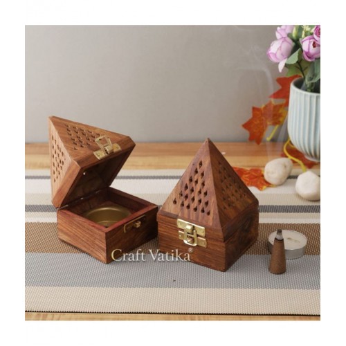 SWH It is a clean and safe way to burn incense as the ash is collected in an enclosure without creating a mess.. Rose wood is long lasting and durable, can be a wonderful gift item. Wooden incense burner with a storage compartment & brass inlay work. This beautifully handcrafted wooden incense sticks holder allows one to store away incense sticks in style. This antique yet attractive item is an exclusive souvenir for yourself and your loved ones.Nature appearance makes this holder is simple but delicate, can well present your incense, nice to use when having meditation, yoga, spa, relaxation...