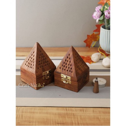 SWH It is a clean and safe way to burn incense as the ash is collected in an enclosure without creating a mess. Rose wood is long lasting and durable, can be a wonderful gift item. Wooden incense burner with a storage compartment & brass inlay work. This beautifully handcrafted wooden incense sticks holder allows one to store away incense sticks in style. This antique yet attractive item is an exclusive souvenir for yourself and your loved ones. Nature appearance makes this holder is simple but delicate, can well present your incense, nice to use when having meditation, yoga, spa, relaxation...Set Of 2