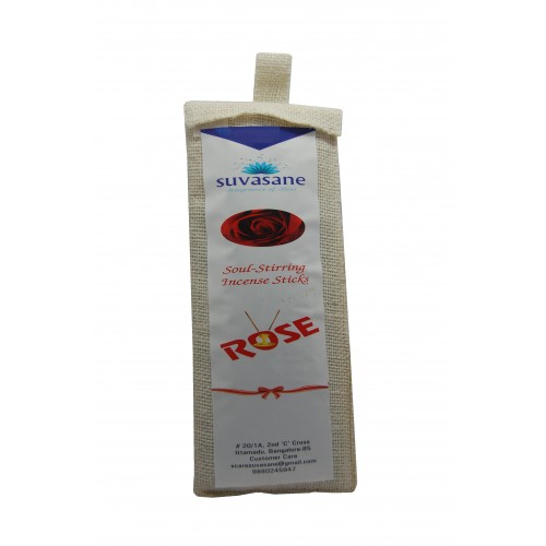 Suvasane Agarbatti Rose Fragrance, 120 sticks per pack, Black 9" sticks in jute bag