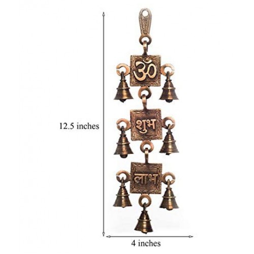 Vyomika Decor Om Shubh Labh Brass Wall Hanging Bells (10 cm x 2 cm x 31, Brown)