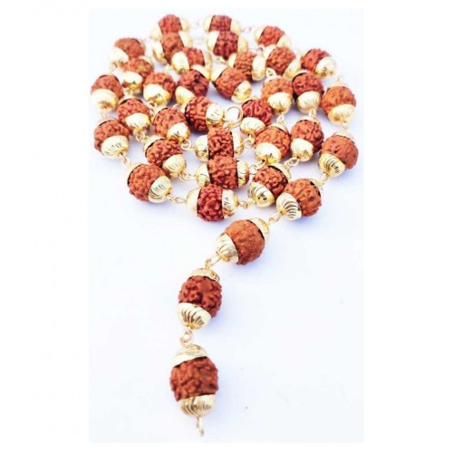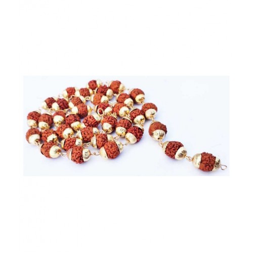 Lord Shiv Trishul Pendant With Rudraksha Cap Mala Panchmukhi Gold-plated Wood, Brass Pendant