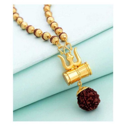 According to Hindu Old Scriptuers it is beleved that 5 Mukhi Rudraksha with Trishul & Damru Mala holds three fold powers of Lord Shiva. It has a Trishul, a Damaroo and a Rudraksha (All favourite to Lord Shiva) Lord Shiva uses Trishul when he gets angry, to destroy the evils from the earth. He plays Damaroo (a musical instrument) when He is happy which fills the surroundings with positive energy. Rudraksha is said to be an eye or tear of the lord, which signifies health and equilibrium of mind. This auspicious Kavach is made of combination of eight metals. Hence, it shall retain its shine and never tarnish. One who wears this Shiv Shakti Kavach is blessed by the lord himself.