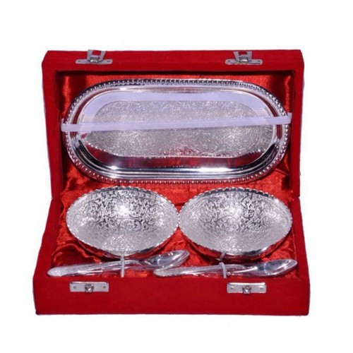 German Silver Bowl set with 2 Bowls ,2Spoons & tray