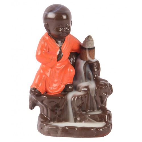 Asian Aura Presents you a new Series of Incense honder Cum Showpiece Figurine Which is Back-flow incense burner creates an illusion of a smokey waterfall. This piece of art has lord Buddha sitting and meditating beside the waterfall. Simply place an incense cone at the top of the waterfall, and with the cone's special properties, the smoke starts to flow in reverse direction, that is from top to bottom, and in-turn creates a beautiful smokey waterfall. With scented smoke flowing in waves beside the Buddha, this makes the perfect housewarming gift for any home! Back-flow Buddha Incense burner comes with a box of 10 back-flow incense cones. You can order more back-flow cones from Us. This showpiece has been diligently handcrafted by skilled artisans using various traditional techniques.
