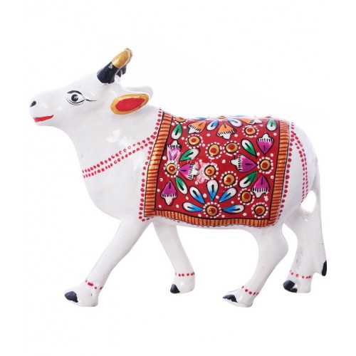 Beautiful creation of kamdhenu cow is a perfect symbol of the undying aura of the holy saint that encompasses numerous devotees round the globe. This statue aptly conveys the emotions of people who consider cow (gomatha) as a motherly figure. Kamdhenu cow statues are widely used for decoration purposes in homes and offices. It serves as a great gift, especially around religious celebrations and festivities. This meenakari metal artifact has been made by skilled artisans from the house of eCraftIndia using various traditional techniques.