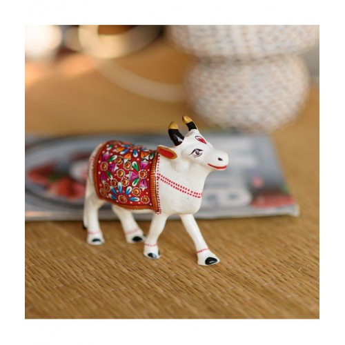 Package Contents:1 Meenakari Metal White Calf Figurine