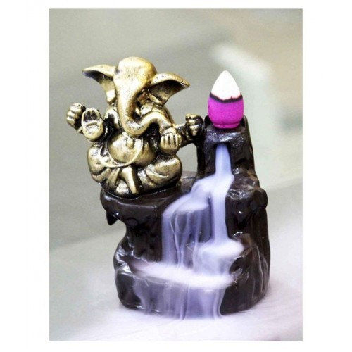 FSN Incense holder Cum Showpiece Figurine Which is Back-flow incense burner creates an illusion of a smokey waterfall. This piece of art has lord Ganesha sitting beside the waterfall. Simply place an incense cone at the top of the waterfall, and with the cone’s special properties, the smoke starts to flow in reverse direction, that is from top to bottom, and in-turn creates a beautiful smokey waterfall.