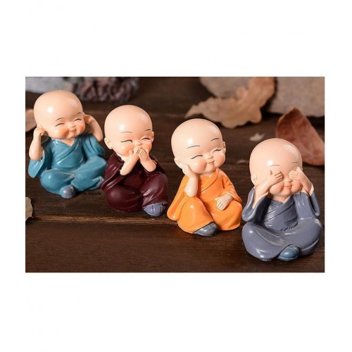 HOUSEMALL Multicolour Polyresin Monk Buddha Smoke Backflow - Pack of 4